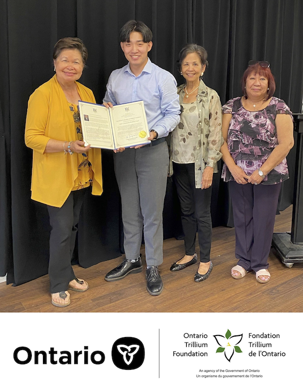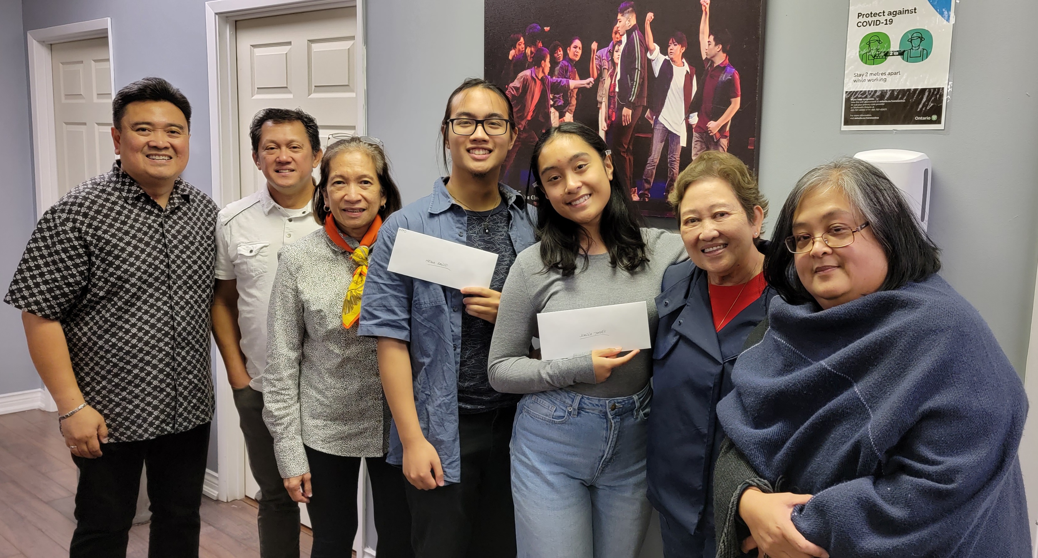 Congratulations to Hesus Ranjo and Joanna Torres for being the recipient of the 2022 Bursary Award. Above photo representing the youth group are board members Gary de las Alas, Chairperson Art Canseco, Jane Avila, Hesus, Joanna, Asst. Treasurer Alicia Chiu and Anna Torres.