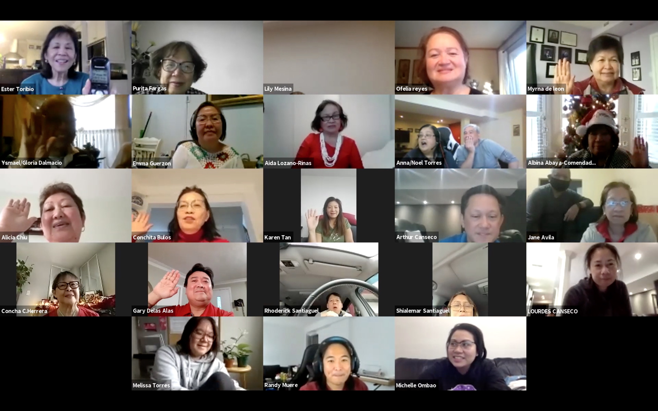 The meeting was headed by Ester Toribio and co-chaired by Arthur Canseco. After going through the agenda for the meeting, discussing the financial status of the MFFC and nominations and voting held days before the meeting started, the meeting adjourned on a high note with a zoom Christmas chat. The MFFC has re-elected the following members: Alicia Chiu, Chit Bulos, Dr. Bina Comendador, Ysmael Dalmacio, Gary de las Alas, Myrna de Leon and Karen Tan. The MFFC wishes to congratulate the elected officers.