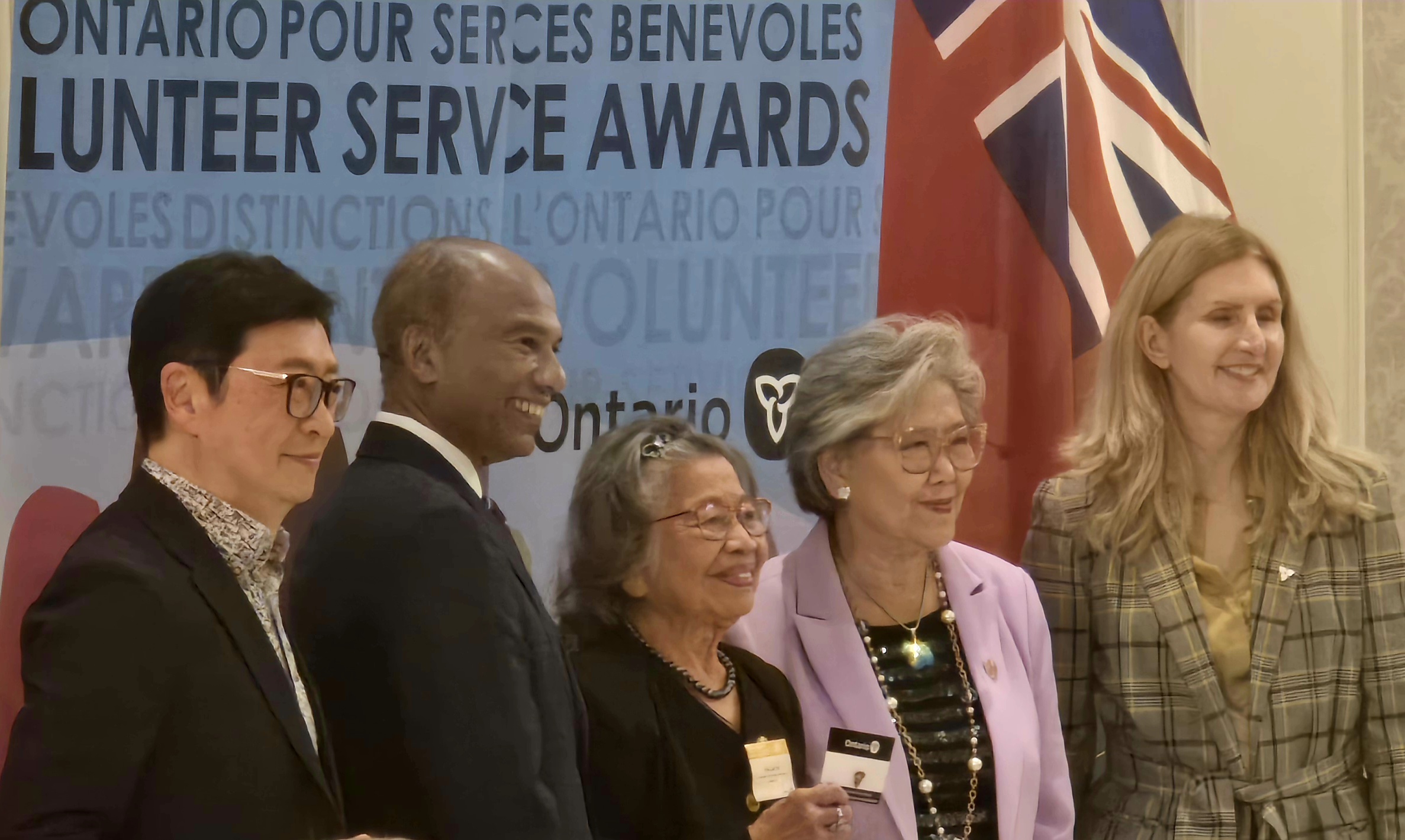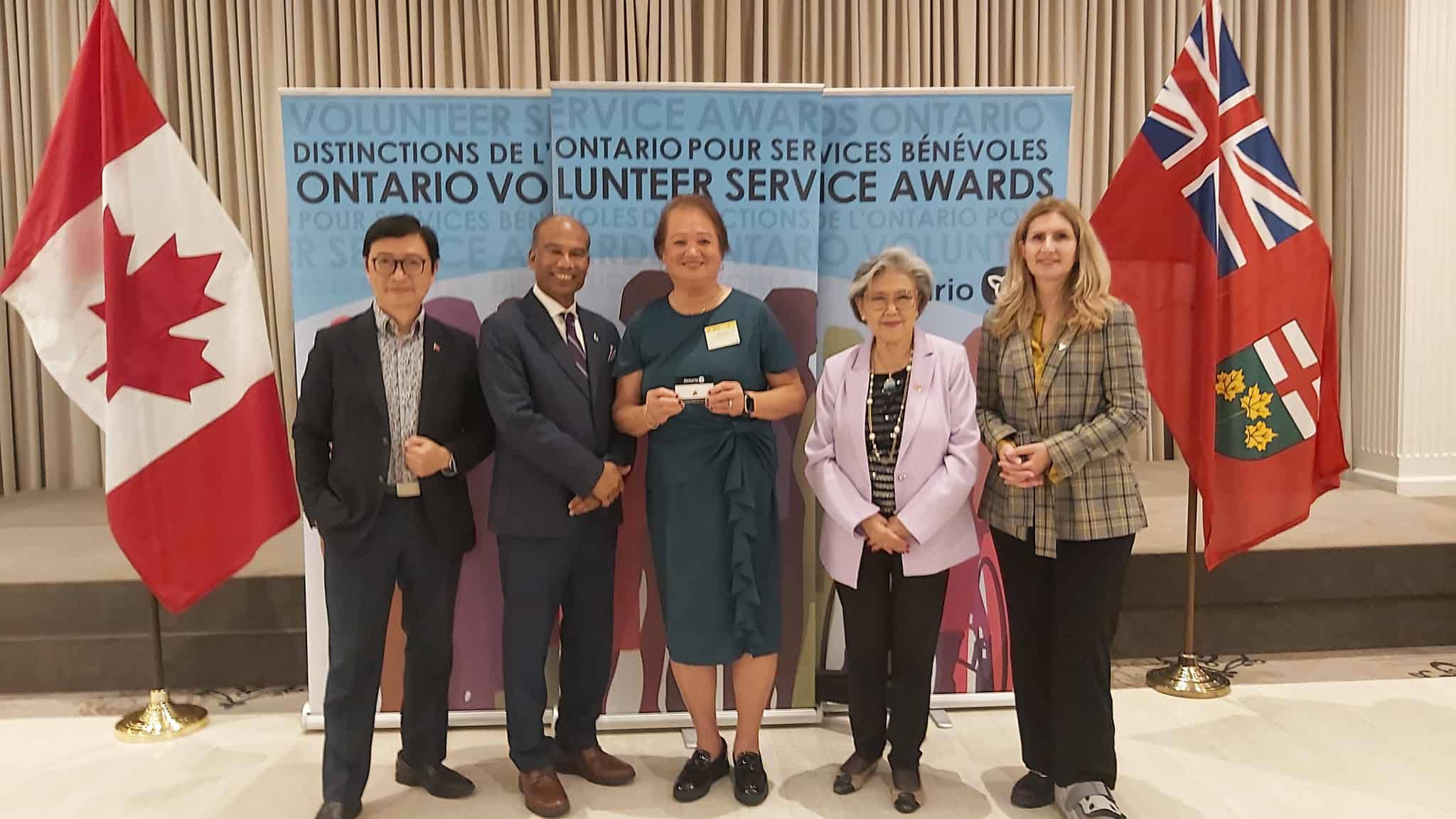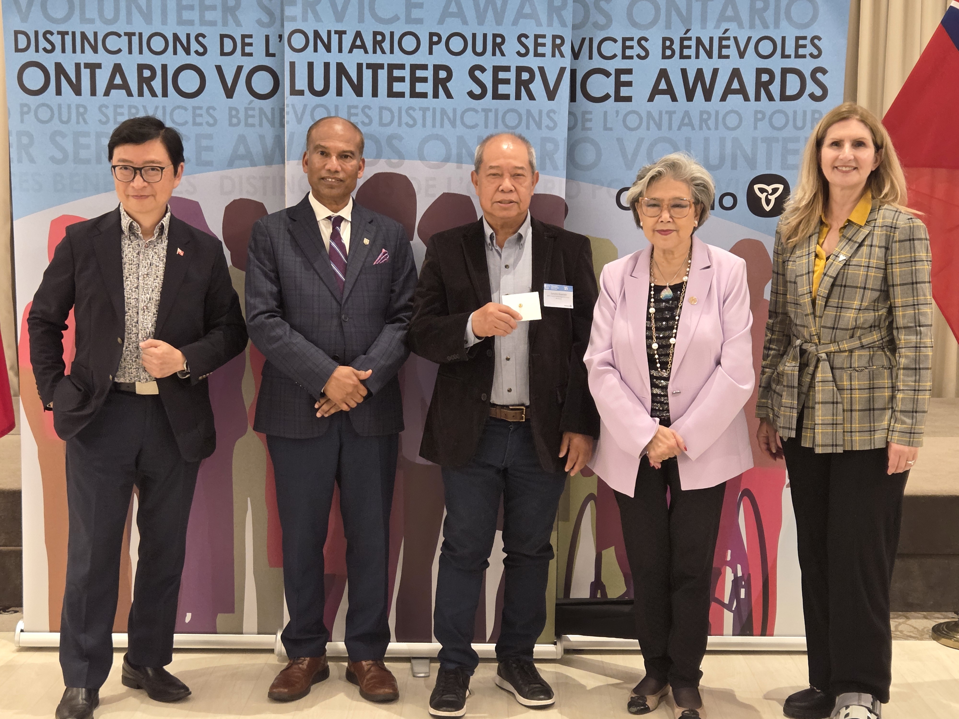 The awardees are Yoly Ladines, Alice Chiu, Ester Toribio, Lito & Candy Martin, Purita Fargas, Ofie Reyes, Sancho Guerzon, Loudette Canseco. Not in the photos are Gary de las Alas, Anna Torres, Sabrina de las Alas, Angelica Canseco, Chloe Musca and Malou Dizon. The MPPs present were Hon. Billy Pang, Hon. Logan Kanapathi, Hon. Daisy Wai and Hon. Laura Smith.